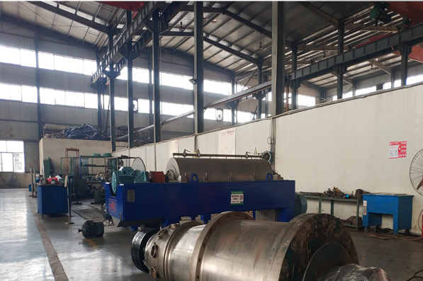 卧式螺旋离心机由高速旋转的转鼓组成,转速略低于转鼓转向的螺旋和差速器。当污泥进入离心机转鼓腔时,高速旋转的转鼓具有很强的离心力。由于污泥颗粒密度高,离心力大,污泥被甩在转鼓内壁上,形成固环层,而水的密度较小。